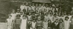 Tczew. Uczniowie szkoły nowomiejskiej na tle budynku przy ulicy Południowej 6 – klasa III A (współcześnie szkoła podstawowa – filia Sportowej Szkoły Podstawowej nr 2 z Oddziałami Integracyjnymi w Tczewie)
