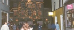 Tczew, ulica Krótka, ulica Krótka nocą, Tczew nocą, Stare Miasto, widok od strony Placu Hallera, ozdoby świąteczne, iluminacja, iluminacja świąteczna, dekoracje świąteczne, dekoracje świetlne, dekoracje bożonarodzeniowe, Boże Narodzenie, girlandy, zima, śnieg, choinki, grudzień 2001, zima 2001, budownictwo, architektura, ulica Krótka 15, ulica Krótka 14, ulica Krótka 13, ulica Krótka 12, ulica Krótka 11, ulica Krótka 10, ulica Krótka 9, ulica Krótka 8, ulica Krótka 7, ulica Krótka 17, ulice Tczew, urbanistyka, samochody osobowe, budka telefoniczna, kiosk, RUCH, ulica Krótka 6, kamienice Tczew