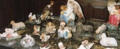 Tczew. Zniszczona szopka bożonarodzeniowa. Kościół pw. Podwyższenia Krzyża Świętego w Tczewie (fotografia wykonana 13 stycznia 2005 roku)