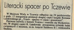 Tczew, Roman Landowski, Tczew – spacery w czasie i przestrzeni, Tczew – spacery w czasie i przestrzeni. Ludzie i zdarzenia, Tczew – spacery w czasie i przestrzeni część II, Tczew – spacery w czasie i przestrzeni część I, Tczew – spacery w czasie i przestrzeni. Od osady do miasta, Aleksander Skultet, Sambor II, Johann Reinhold Forster, Muzeum Wisły w Tczewie [współcześnie: Fabryka Sztuk z Muzeum Wisły w Tczewie], Muzeum Wisły w Tczewie. Oddział Centralnego Muzeum Morskiego w Gdańsku, Gazeta Reklamowa Tczew – wydawca, Gazeta Reklamowa Tczew, Gazeta Reklamowa Józef Golicki, Józef Golicki, Roman Klim, Jasna i Dersław (zbiór baśni), Jasna i Dersław – zbiór baśni – wznowienie, Ziemia łagodna [publikacja o tematyce regionalnej], Tadeusz Wilczarski [na zdjęciu], Kazimierz Arczewski [na zdjęciu]