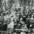 Tczew, park miejski, amfiteatr, amfiteatr w Parku Miejskim, ławki, amfiteatr – ławki, amfiteatr – miejsca siedzące, wiosna, wiosna 1985, powitanie wiosny, powitanie wiosny 1985, pierwszy dzień wiosny, pierwszy dzień wiosny 1985, marzec 1985, marzanna, obrzędy, etnografia, kultura ludowa, zwyczaje, tradycje, obrzędowość, obrzędy doroczne, folklor, topienie marzanny, szkoły podstawowe Tczew, uczniowie, dzieci, nauczycielka, zdjęcie grupowe, fotografia grupowa