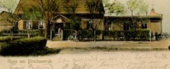 - pocztówka koloryzowana (litograficzna / z czterema widokami / z graficznymi zdobieniami: kwiaty); wyd. M.R.D. [M. Renner Dirschau]