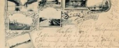 - pocztówka koloryzowana (litograficzna / z dwoma widokami / z graficznymi zdobieniami: kwiaty)