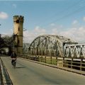 Tczew, mosty wiślane, most drogowy, most kolejowy, mosty Tczew, wieża w stylu neogotyckim, wieżyczka, rowerzysta, rower, Piotr Kończewski, tablica pamiątkowa, odsłonięcie tablicy pamiątkowej, odsłonięcie tablicy pamiątkowej 24.09.2004, Amerykańskie Stowarzyszenie Inżynierów Budownictwa, ASCE, Międzynarodowy Zabytek Inżynierii Budowlanej, Tczew 2004, Tczew wrzesień 2004, lata dwutysięczne, po 2000 roku