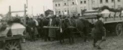Tczew, ulica Sobieskiego, ulica Sobieskiego 21, ulica Sobieskiego 22, ulica Sobieskiego 29, Andrzej Wronka, biskup Andrzej Wronka, Władysław Młyński, ks. Władysław Młyński, nabożeństwo, nabożeństwo żałobne, msza żałobna, msza św. żałobna, pogrzeb, uroczystości pogrzebowe, pogrzeb 01.11.1945, uroczystości pogrzebowe 01.11.1945, trumny, wóz, zbrodnie nazistowskie, zbrodnie niemieckie, ludobójstwo, masowe mordy, mord w koszarach, zbrodnia w koszarach, mord w koszarach 1939, zbrodnia w koszarach 1939, Tczew 1945, Tczew listopad 1945, lata 40. XX wieku