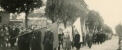 Tczew. Uroczysty pochówek ofiar pomordowanych w koszarach tczewskich w roku 1939. Kondukt – ulica Sobieskiego