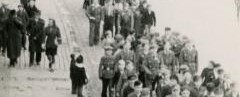 Tczew, ulica Kardynała Stefana Wyszyńskiego, ulica 1 Maja, ulica 1-go Maja, Andrzej Wronka, biskup Andrzej Wronka, Władysław Młyński, ks. Władysław Młyński, pogrzeb, uroczystości pogrzebowe, pogrzeb 01.11.1945, uroczystości pogrzebowe 01.11.1945, kondukt, kondukt ul. Kard. S. Wyszyńskiego, dziecko, dzieci, młodzież, trumny, wieniec pogrzebowy, wieńce, wozy, konie, Uroczystość Wszystkich Świętych, Uroczystość Wszystkich Świętych 1945, uroczystości żałobne, zbrodnie nazistowskie, zbrodnie niemieckie, ludobójstwo, masowe mordy, mord w koszarach, zbrodnia w koszarach, mord w koszarach 1939, zbrodnia w koszarach 1939, Tczew 1945, Tczew listopad 1945, lata 40. XX wieku
