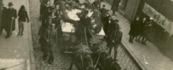 Tczew, ulica Jarosława Dąbrowskiego, ulica J. Dąbrowskiego, ulica Jarosława Dąbrowskiego 22, ulica J. Dąbrowskiego 22, Andrzej Wronka, biskup Andrzej Wronka, Władysław Młyński, ks. Władysław Młyński, pogrzeb, uroczystości pogrzebowe, pogrzeb 01.11.1945, uroczystości pogrzebowe 01.11.1945, kondukt, kondukt ul. J. Dąbrowskiego, kondukt ulica Jarosława Dąbrowskiego, żołnierz, żołnierze, Ludowe Wojsko Polskie, dziecko, dzieci, wieniec pogrzebowy, wieńce, flaga, flaga biało-czerwona, flaga narodowa, flaga Polski, trumny, wozy, konie, owocarnia – ulica J. Dąbrowskiego 22 – Tczew, owocarnia – ulica Jarosława Dąbrowskiego 22 – Tczew, sklep z owocami – ulica J. Dąbrowskiego 22 – Tczew, sklep z owocami – ulica Jarosława Dąbrowskiego 22 – Tczew, paszteciarnia – ulica J. Dąbrowskiego 22 – Tczew, paszteciarnia – ulica Jarosława Dąbrowskiego 22 – Tczew, Uroczystość Wszystkich Świętych, Uroczystość Wszystkich Świętych 1945, uroczystości żałobne, zbrodnie nazistowskie, zbrodnie niemieckie, ludobójstwo, masowe mordy, mord w koszarach, zbrodnia w koszarach, mord w koszarach 1939, zbrodnia w koszarach 1939, Tczew 1945, Tczew listopad 1945, lata 40. XX wieku