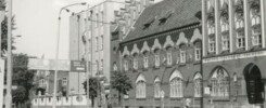 Tczew, Stare Miasto, ulica Obrońców Westerplatte, ulica Obrońców Westerplatte 1, ulica Obrońców Westerplatte 2, ulica J. Dąbrowskiego 7, ulica Jarosława Dąbrowskiego 7, poczta, urząd pocztowy, poczta – ulica J. Dąbrowskiego 7 – Tczew, poczta – ulica Jarosława Dąbrowskiego 7 – Tczew, urząd pocztowy – ulica J. Dąbrowskiego 7 – Tczew, urząd pocztowy – ulica Jarosława Dąbrowskiego 7 – Tczew, znak drogowy, oświetlenie uliczne, silos, silos na cement, widok od strony ulicy Jarosława Dąbrowskiego, 1984 rok, lata 80. XX wieku