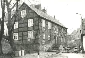 (czas powstania obiektu: około 1850 roku [budynek usytuowany na działce przylegającej do południowego odcinka murów miejskich]; budowa pralni z kuchnią: 1893 rok; przebudowa fasady: 1907 rok; założenie instalacji wodno-kanalizacyjnej: 1909 rok; przebudowa pomieszczeń w oficynie tylnej [do celów mieszkalnych]: lata 1927-1939; zniszczenie wschodniej części domu: 1939 rok; zmniejszenie otworów okiennych i wymiana stolarki okiennej w parterowej części budynku: początek lat 80. XX wieku;