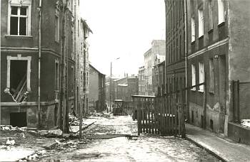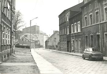 - kamienica mieszkalna [fragment, prawa strona kadru], ulica Wąska 52 [niem. Ulrichstrasse 52] / obecnie [stan na 2025 rok] teren niezagospodarowany