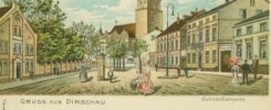 Tczew. Rynek staromiejski / współcześnie Plac Generała Józefa Hallera – niem. Dirschau. Markt mit kath. und ev. Kirche