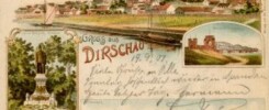 - na awersie nadruk w języku niemieckim: Gruss aus Dirschau [Pozdrowienia z Tczewa]
