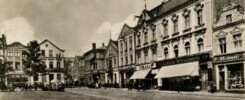 - budynek przy ulicy Zamkowej 5 – lewa, zacieniona strona kadru (budynek przy ul. Zamkowej wzniesiono w 1890 roku w miejscu zniszczonej przez pożar słodowni, obiekt wchodził w skład zespołu browarnego należącego do Johanna Allerta (ul. Zamkowa 1-6), około 1937 r. browar zamknięto i uruchomiono w nim m.in. wytwórnię wód mineralnych)