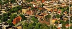 Tczew. Urząd Miejski. Plac Generała Józefa Hallera. Fragment ulicy A. Mickiewicza. Most drogowy. Most kolejowy. Dawne Łazienki Schefflera