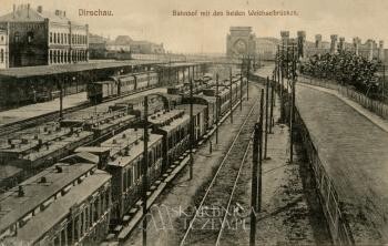 Tczew. Most drogowy. Most kolejowy. Dawny kompleks dworcowy (strona bydgoska) – reprint widokówki wydany z okazji 750-lecia miasta Tczewa Tczew. Dawny dworzec kolejowy. Widok z lotu ptaka. Około 1901 roku Tczew. Mosty przez Wisłę i dawny dworzec Tczew. Most drogowy. Most kolejowy. Dawny kompleks dworcowy – strona bydgoska Tczew. Most drogowy. Most kolejowy. Dawny kompleks dworcowy – strona bydgoska Tczew. Mosty wiślane. Stacja kolejowa – strona bydgoska. W kadrze widoczny m.in. okazały budynek poczty dworcowej i urzędu telegraficznego (współcześnie ulica 1 Maja 10). Początek XX wieku Tczew. Mosty przez Wisłę i dawny dworzec Tczew. Mosty Tczewskie (most drogowy, most kolejowy). Portale Mostów Tczewskich. Panorama miasta – widok od strony Wisły. Dawny dworzec (strona gdańska, strona bydgoska) Tczew. Mosty przez Wisłę. Dawny dworzec kolejowy Tczew. Dawny dworzec kolejowy – strona bydgoska Tczew. Mosty wiślane (most kolejowy, most drogowy). Stacja kolejowa. W kadrze widoczny okazały budynek poczty dworcowej i urzędu telegraficznego (współcześnie ulica 1 Maja 10). Początek XX wieku Tczew. Mosty wiślane (most drogowy, most kolejowy). Zabudowania dworcowe – strona bydgoska. Lata 1901-1909 Tczew. Mosty przez Wisłę. Dawny dworzec kolejowy Tczew. Mosty przez Wisłę. Dawny dworzec kolejowy Tczew. Mosty przez Wisłę i dawny dworzec. Tczew. Dawny dworzec kolejowy. Strona gdańska. Strona bydgoska. Perony. Początek XX wieku Tczew. Mosty przez Wisłę i dawny dworzec Tczew. Mosty przez Wisłę i dawny dworzec 18/18